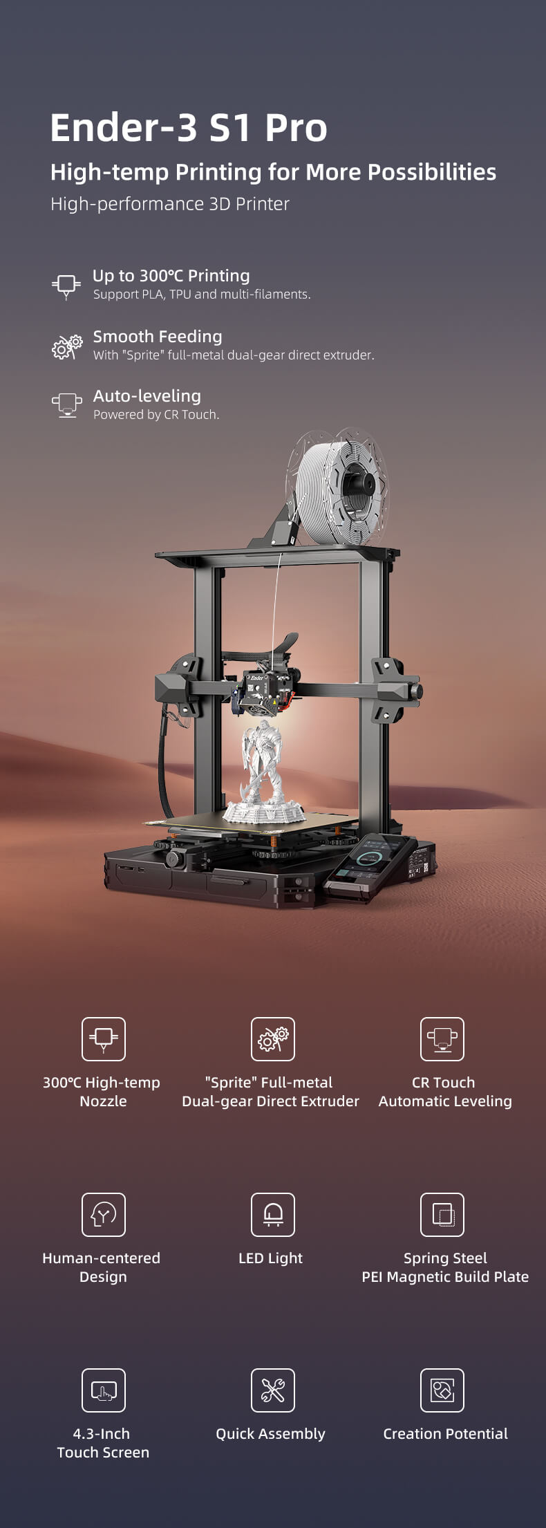 - Hassle-free CR Touch Auto-leveling